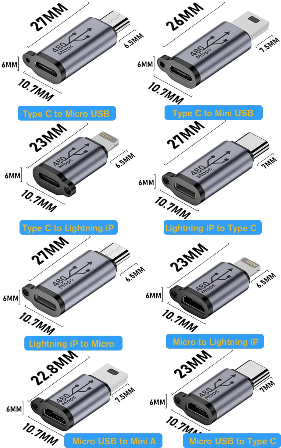 typ c to Mini usb: fast charging 18W,Data 480Mbps