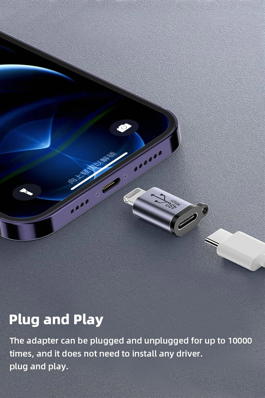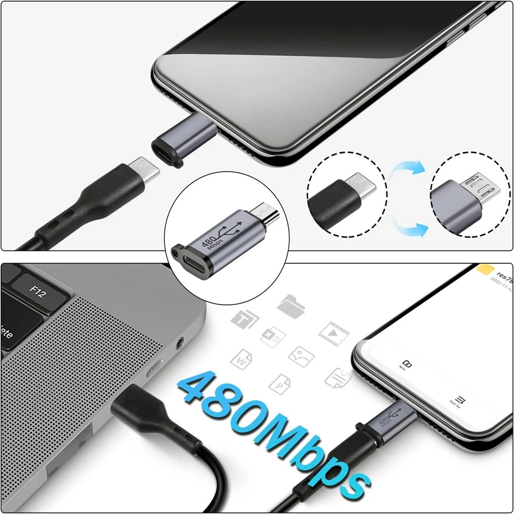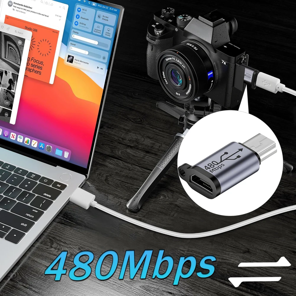 Adaptador Tipo C para Micro USB Mini Micro-B 480Mbps, conversor fêmea para macho, USB C para carregador de iluminação Extensor Carregamento rápido OTG Compatível com iPhone, MacBook, Samsung Galaxy