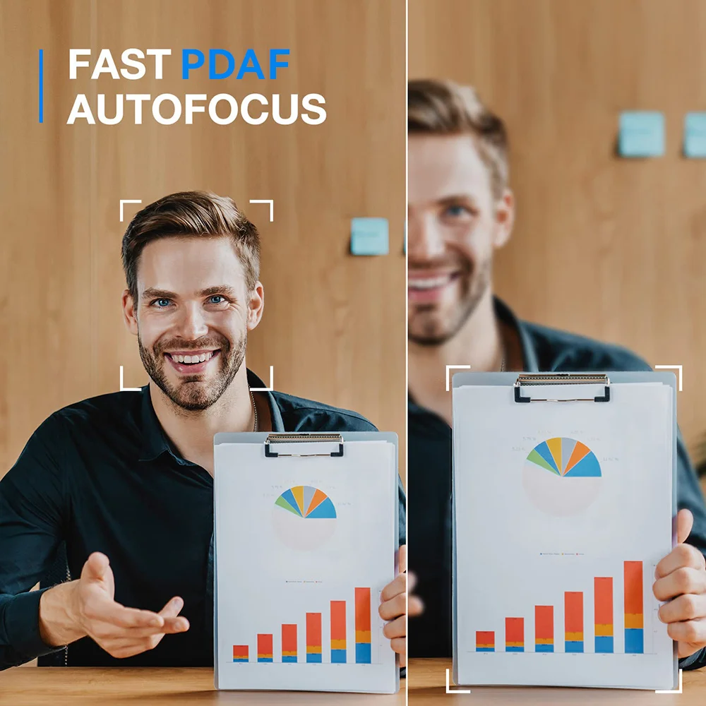 O foco automático de alta velocidade com tecnologia PDAF garantindo que você comece a reunião imediatamente