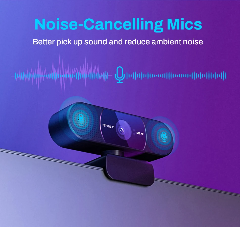 Dois microfones com cancelamento de ruído com distância de captação de até 8 pés, combinando com o mais recente chip de cancelamento de ruído e algoritmo AGC