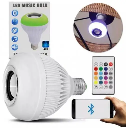 Nova lâmpada bulbo 12w de potência que toca música e ainda tem controle remoto com 24 funções e 16 núcleos.